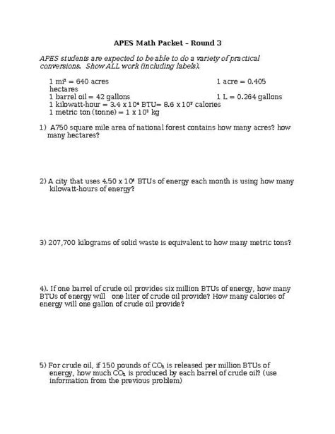 This Worksheet Is Designed Help To Prepare You For The Type Of Calculations You May Encounter On This Year’s Apes Exam.