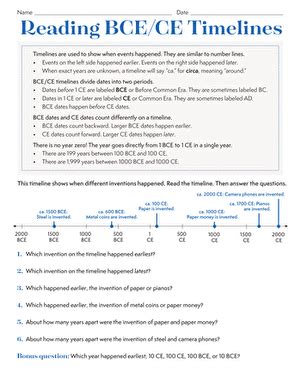 It also goes through the some. Web this is a worksheet for students to put together a timeline using ad, bc, bce, and ce. It focuses on explaining to students what bce and ce are, how to read a timeline, how to.