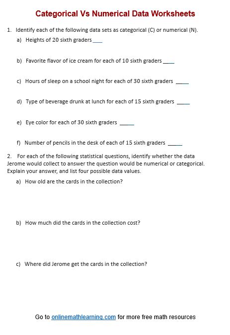Katie is collecting data about the number of people that are interested in different. Web categorical data vs numerical data. Web categorical vs numerical data worksheet.