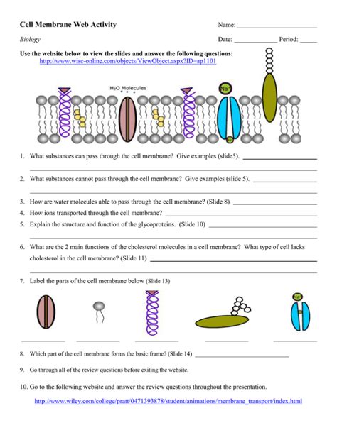 Cell Membrane Activity Worksheet. Free interactive exercises to practice online or download as pdf to print. A molecule's ability to permeate through a cell membrane is one of.